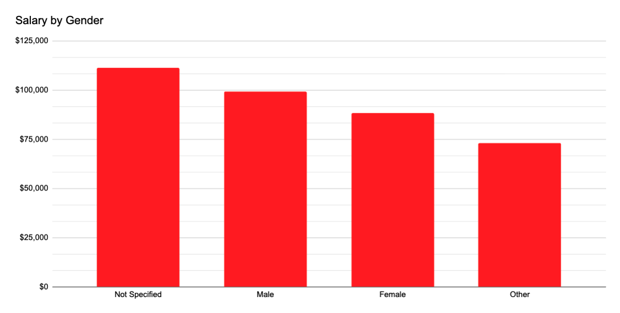 This chart displays average salaries for SEO Managers based on gender. Salaries are highest for individuals who chose not to specify their gender, followed by male and female SEO Managers. Those identifying as "Other" report the lowest average salaries, indicating a potential disparity that may warrant further exploration.